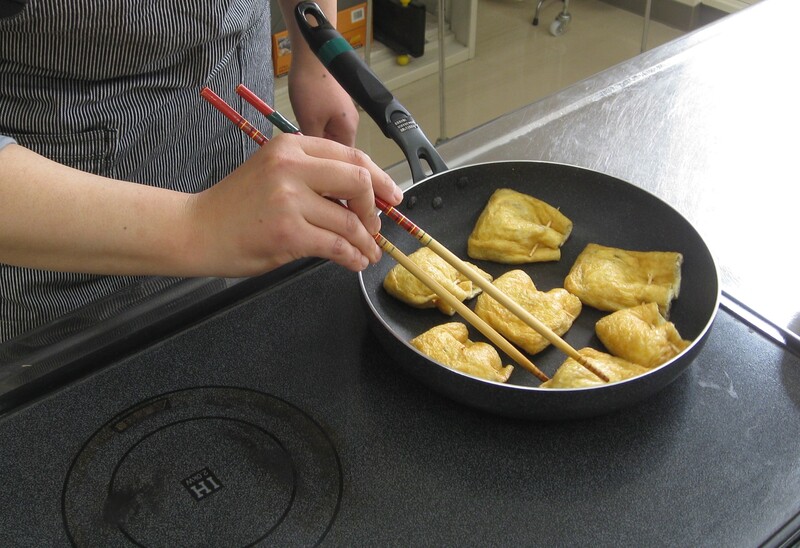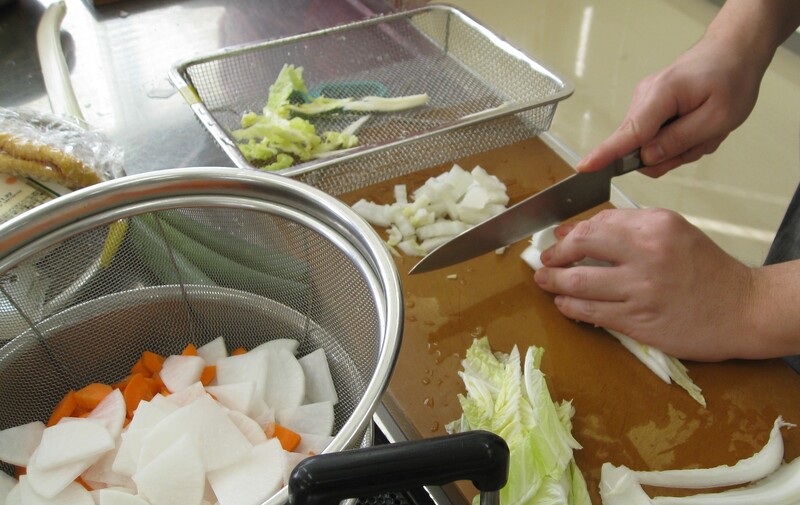 栄養士の方にご指導をいただきながら、おにぎり・豚汁・チーズ入り巾着を作りました。