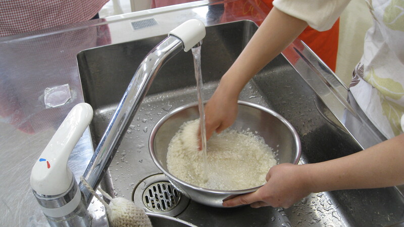 米のとぎ方や調理方法を教わり、食事のバランスや咀嚼の大切さについて講話もいただき