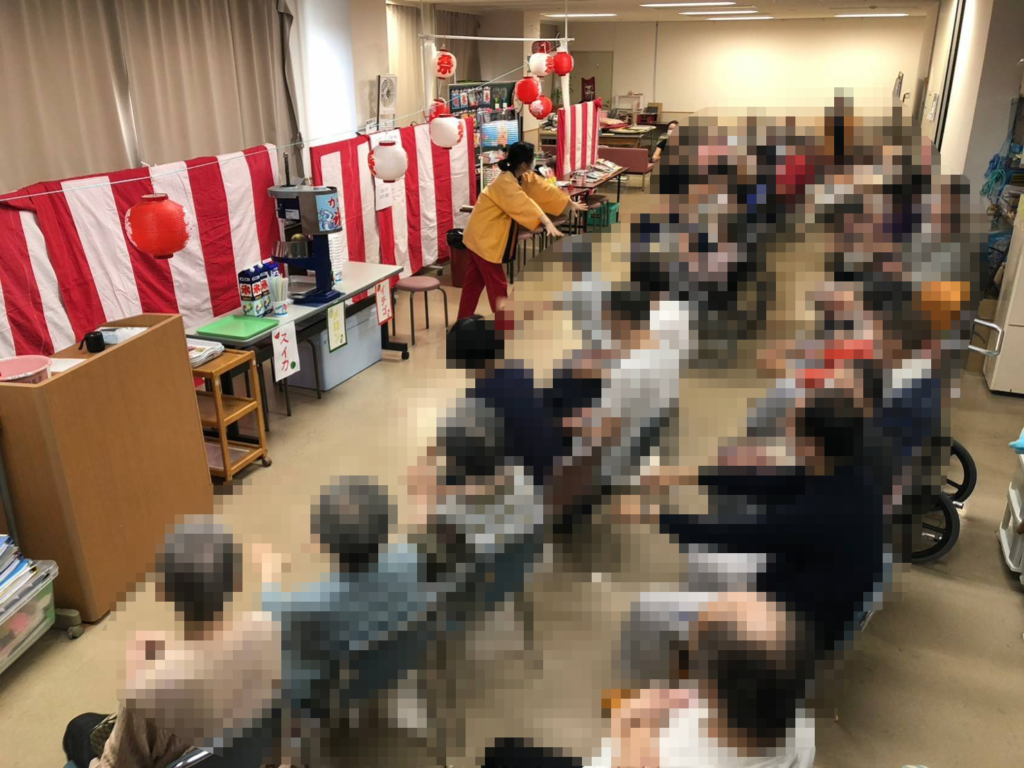 4月 お花見会、5月 ピクニック、7月 卓球大会、9月 秋祭り、10月 芋煮会、12月 クリスマス会、2月 節分会